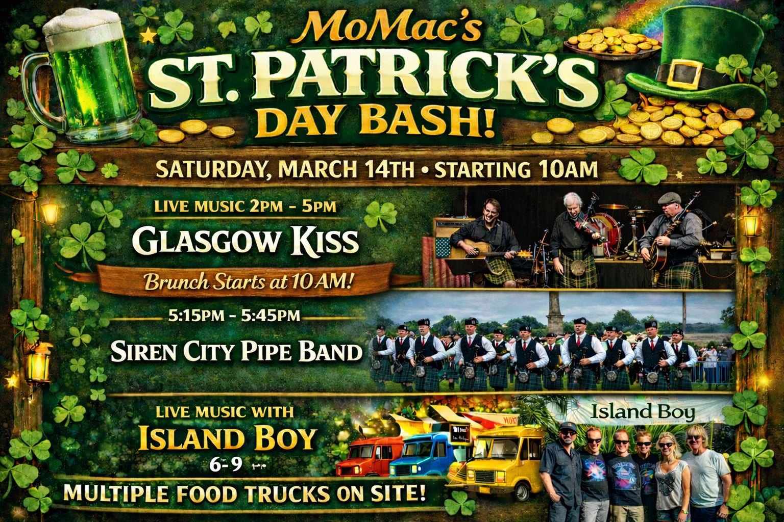 MoMac’s St. Patrick’s Day Celebration 🍀 Get ready for one of our biggest parties of the year! MoMac is going all out for St. Patrick’s Day and you’re invited to celebrate with us! We’re opening early at 10AM to kick things off right 🍳🍺 🥞 Brunch by Javi’s Start your day with delicious brunch offerings […]